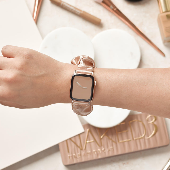 Beige-Satin-Scrunchie-Apple-Watch-Strap-Band-Flat-Lay