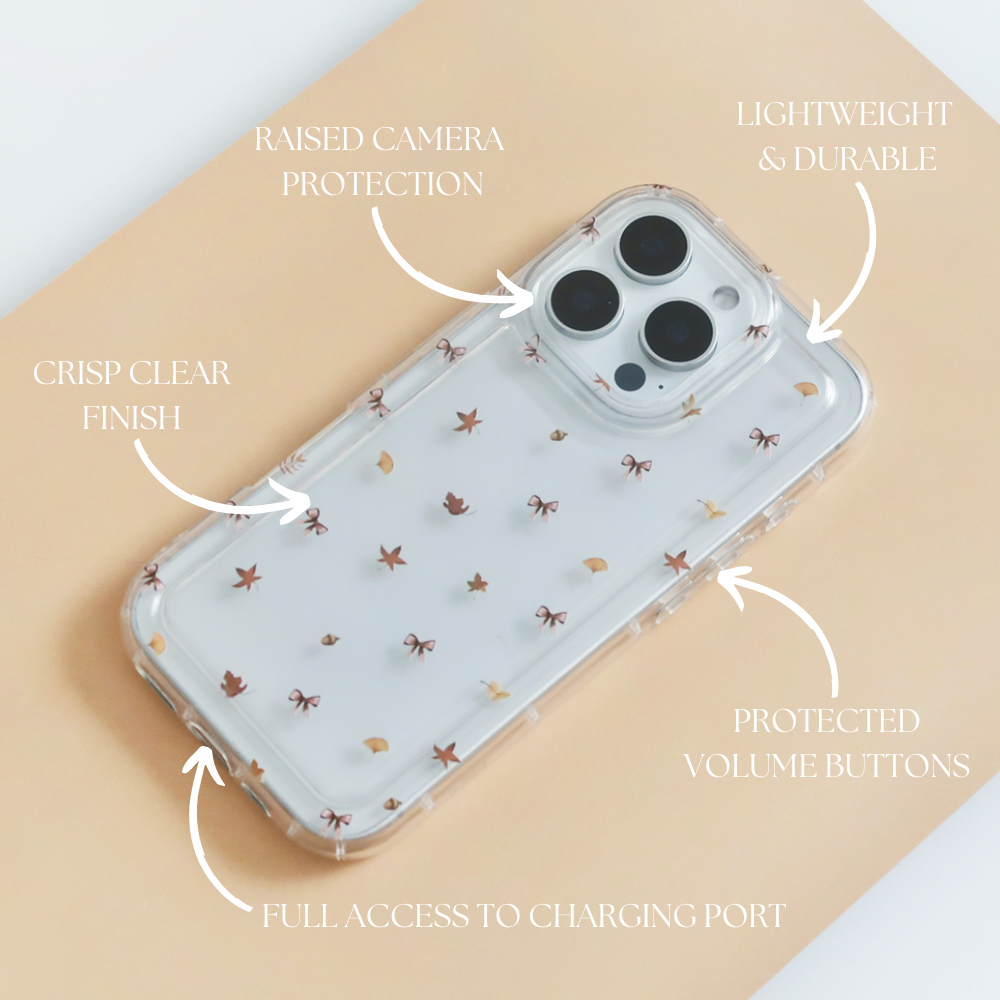 Wrap your phone up in a little slice of seasonal charm with our Clear Phone Case – Autumn Bow.